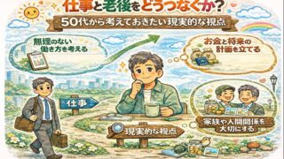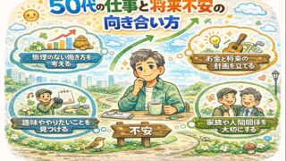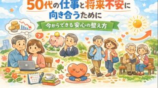 50代になると、仕事・老後・お金・健康など、さまざまな不安が一度に押し寄せてくることがあります。これまで当たり前だった働き方や生活リズムが、少しずつ変わり始める時期だからこそ、先のことを考えてしまうのは自然なことです。これまで当ブログでは、...